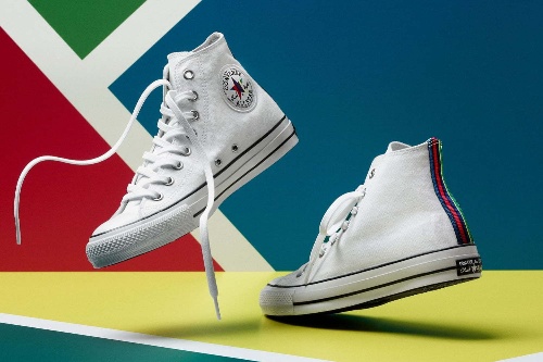 PS ポール・スミス×コンバースのスニーカー「オールスター 100 ハイ」7色のストライプをヒールに