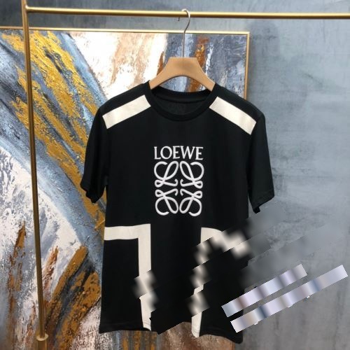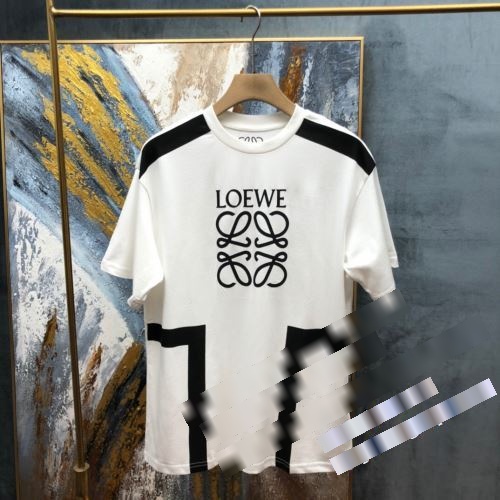 Loeweロエベコピー2024年早春ソリッドカラークラシックビッグロゴ刺繍Tシャツ