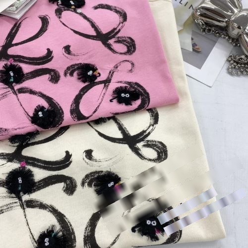 Loeweロエベコピー2024年早春ソリッドカラークラシックビッグロゴ刺繍Tシャツ